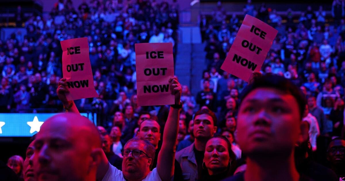 Μερικοί οπαδοί κρατούσαν πινακίδες που έγραφαν “ICE Out Now”, ενώ ορισμένα μέλη μιας ομάδας dunk τραμπολίνο που παρείχε ψυχαγωγία εντός του παιχνιδιού φορούσαν πουκάμισα που αντανακλούσαν το συναίσθημα.