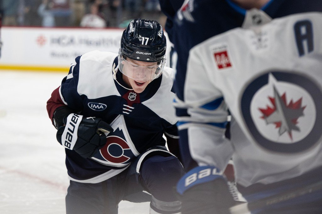 Ο Victor Olofsson (95) του Colorado Avalanche περιμένει μια αναμέτρηση με τους Anaheim Ducks κατά την πρώτη περίοδο στο Ball Arena την Τρίτη, 11 Νοεμβρίου 2025. (Φωτογραφία AAron Ontiveroz/The Denver Post)