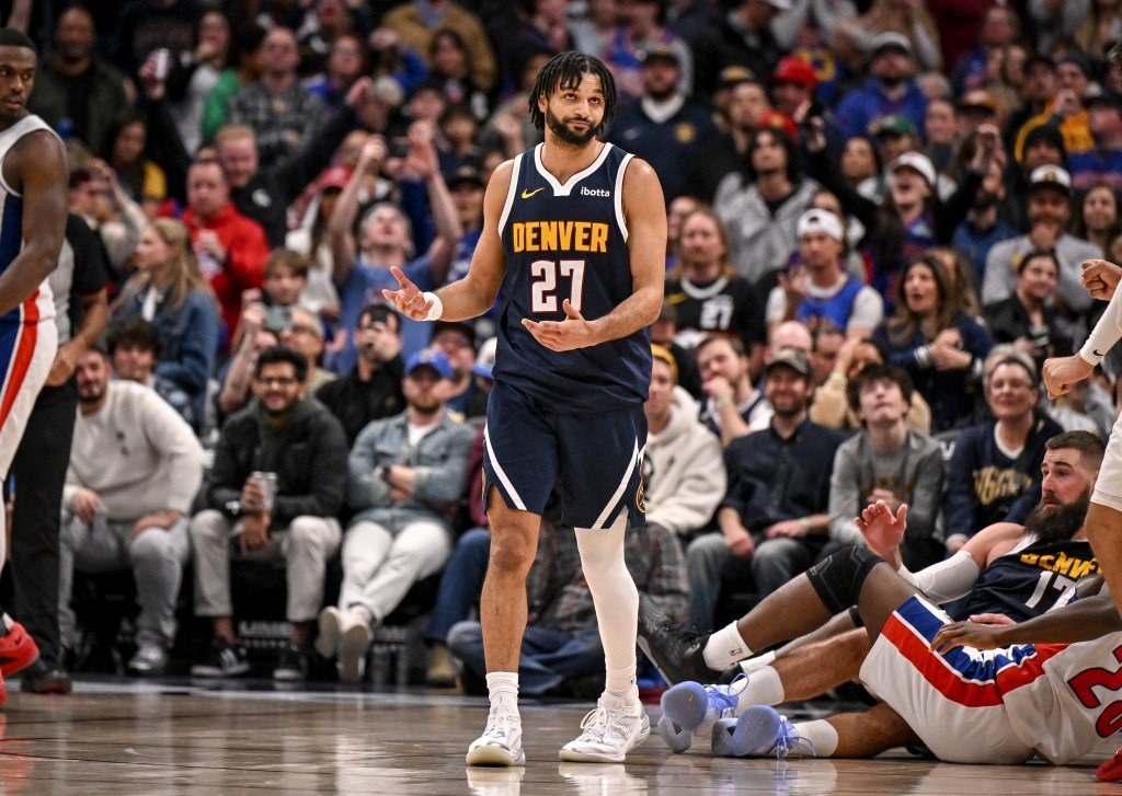 Έχασαν με 109-107 από το Ντιτρόιτ το βράδυ της Τρίτης στο Ball Arena, όταν ο Τζαμάλ Μάρεϊ έκανε μόλις τρεις από τις έξι ελεύθερες βολές (το τελευταίο του λάθος ήταν σκόπιμα) στα τελευταία 3,5 δευτερόλεπτα του αγώνα. Δύο φορές ο Μάρεϊ έκανε ένα απελπισμένο τρίποντο στα τελευταία δευτερόλεπτα και έβγαλε φάουλ από τον Τζαβόντε Γκριν, στέλνοντας τον Μάρεϊ στη γραμμή.