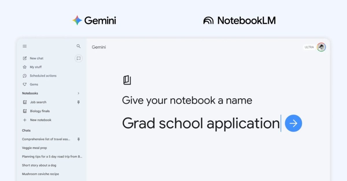 Η εφαρμογή Gemini αποκτά βαθύτερη ενσωμάτωση του NotebookLM μετά την αρχική υποστήριξη πηγής που παρουσιάστηκε πέρυσι. Η Google εισάγει την έννοια του “notebook”. Αυτά τα σημειωματάρια είναι “προσωπικές βάσεις γνώσεων που μοιράζονται στα προϊόντα Google, από το Gemini”. Μπορείτε να τα σκεφτείτε ως έργα. Υπάρχει μια νέα ενότητα “Σημειωματάριο” στο πλαϊνό πλαίσιο Gemini μεταξύ My … Περισσότερα